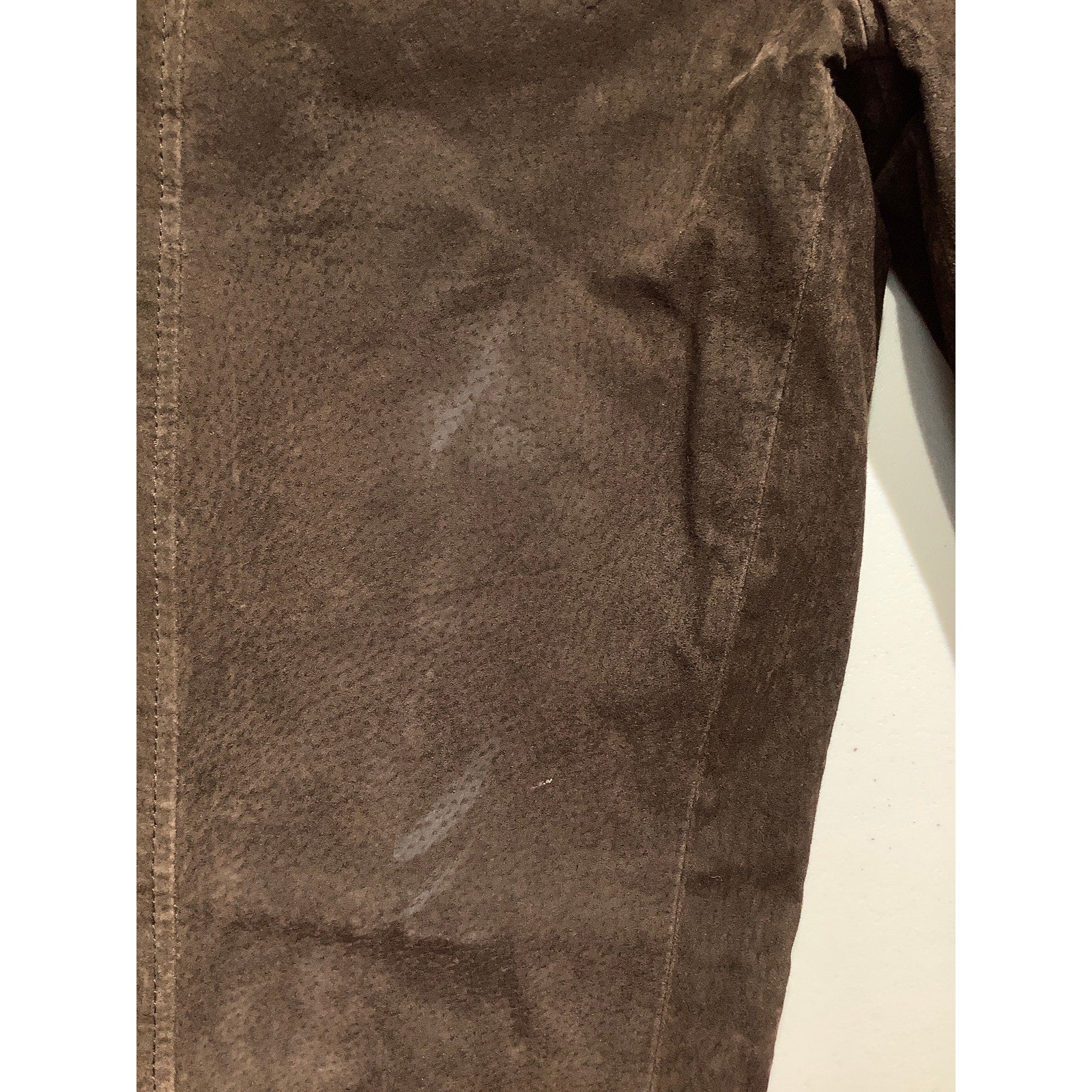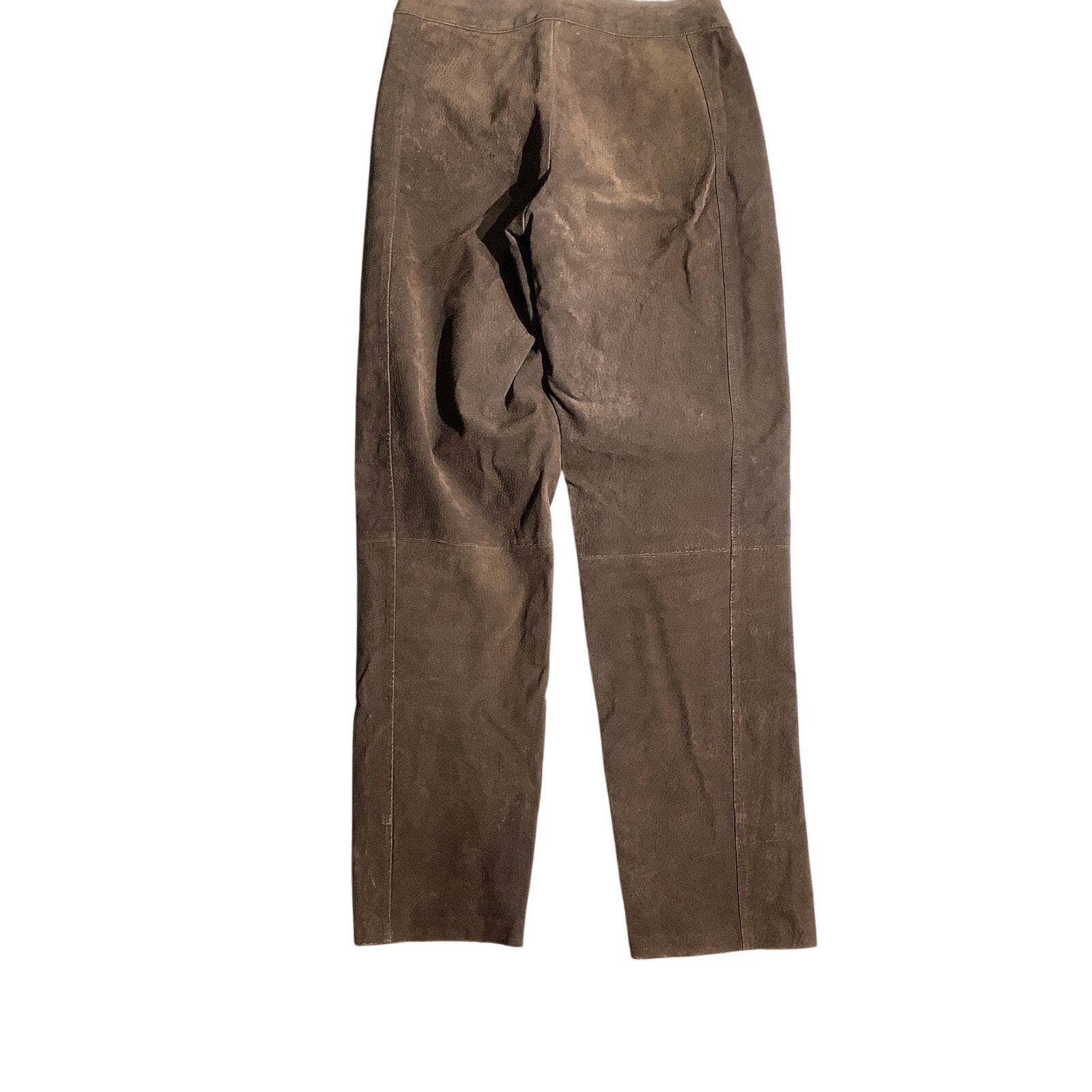 These Bagatelle women’s pants are crafted from 100% genuine leather in a rich brown shade. Designed in a sleek straight-leg silhouette, they bring a timeless and luxurious look to any wardrobe. A rare find in petite sizing, these pants are both stylish and versatile. Please note: there are small stains on the right leg that may come out with cleaning (see photos).