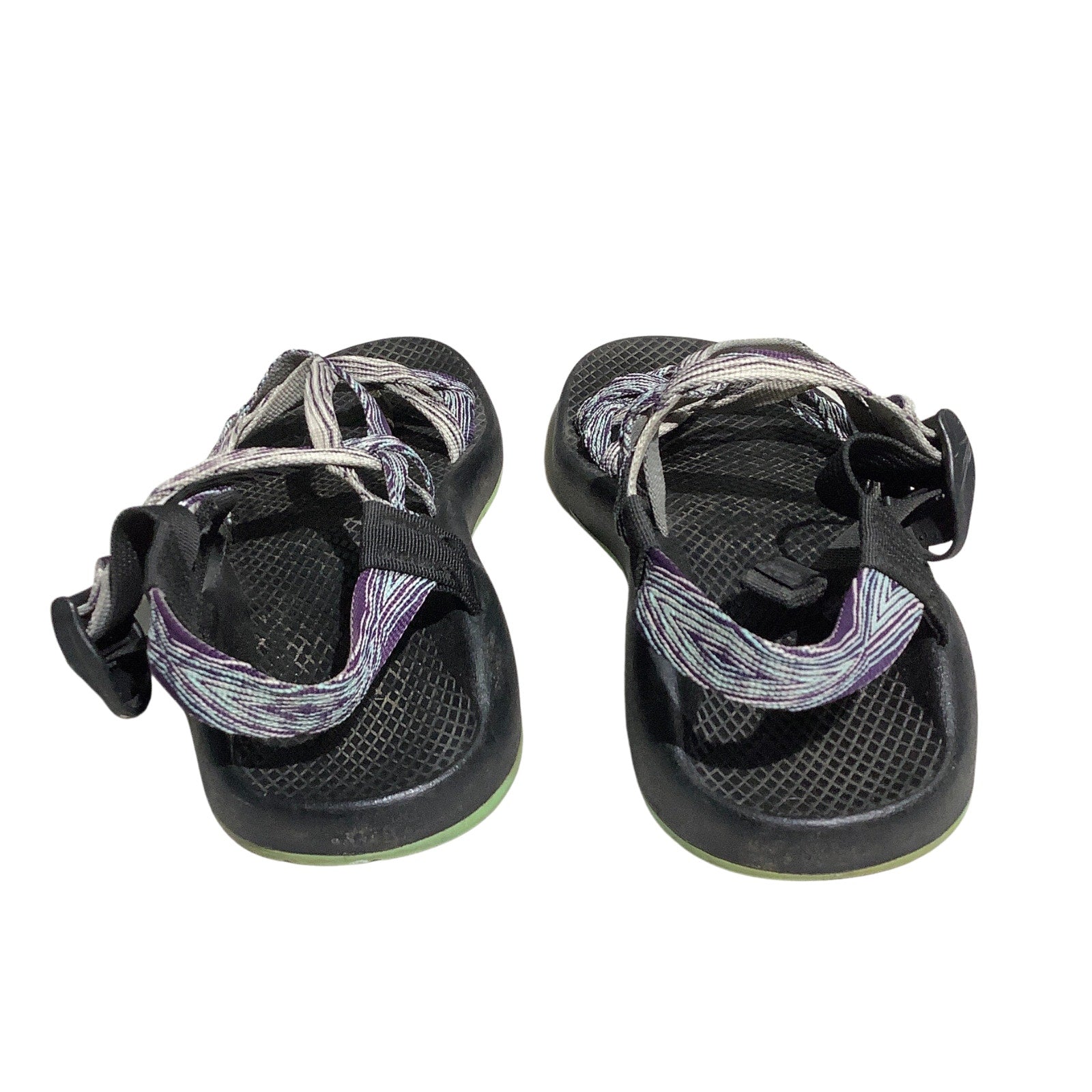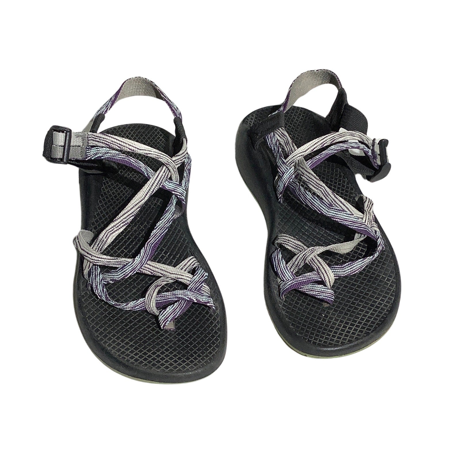 These women’s Chaco ZX/2 sandals in size 8W are designed for all-day comfort and trail performance. Featuring multi-strap support in a gray and purple colorway, these sandals offer Chaco’s signature LUVSEAT™ footbed, adjustable double straps, and a rugged sole perfect for outdoor adventure.