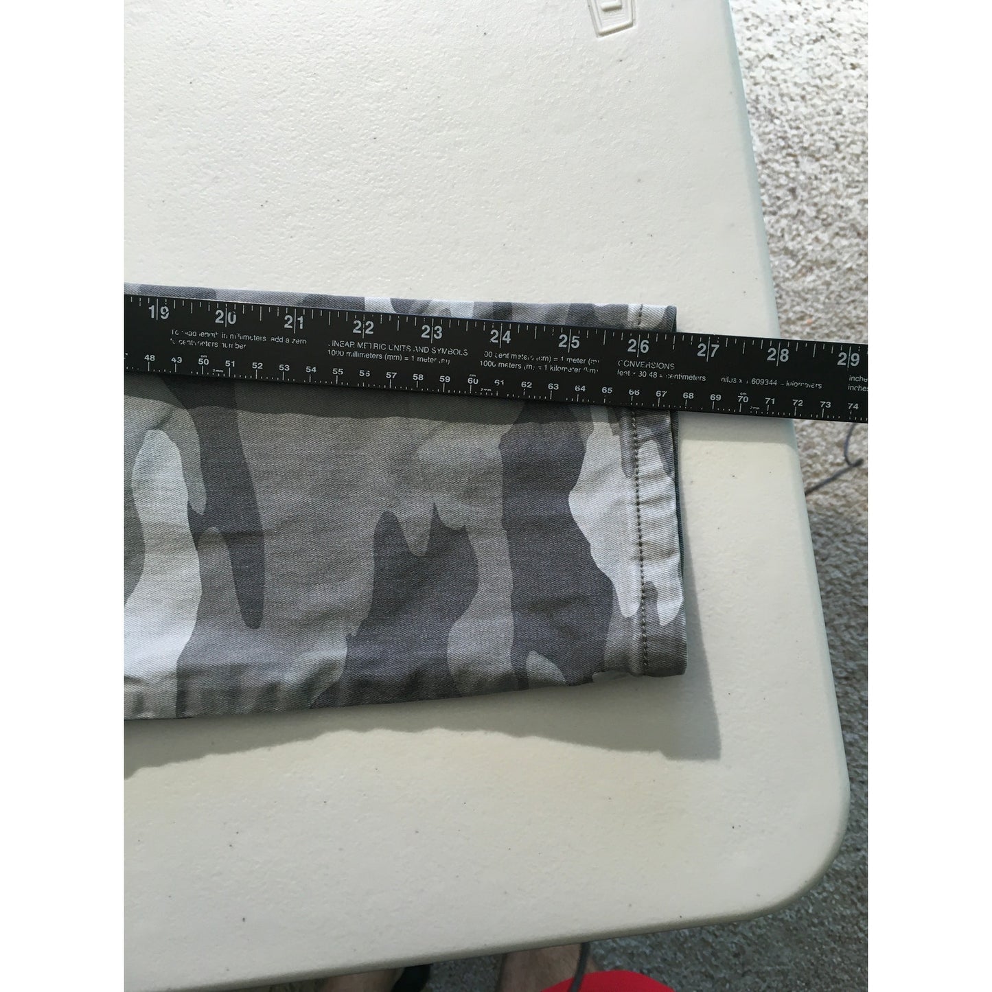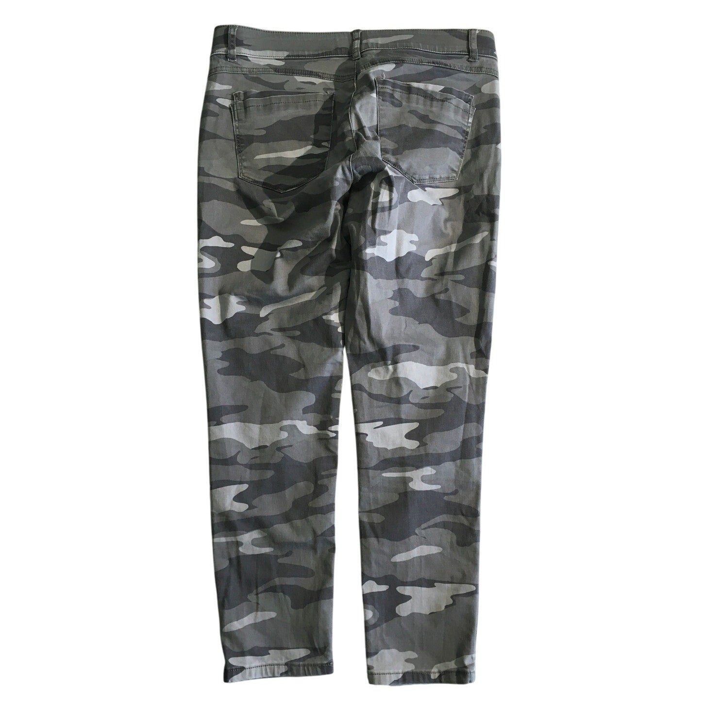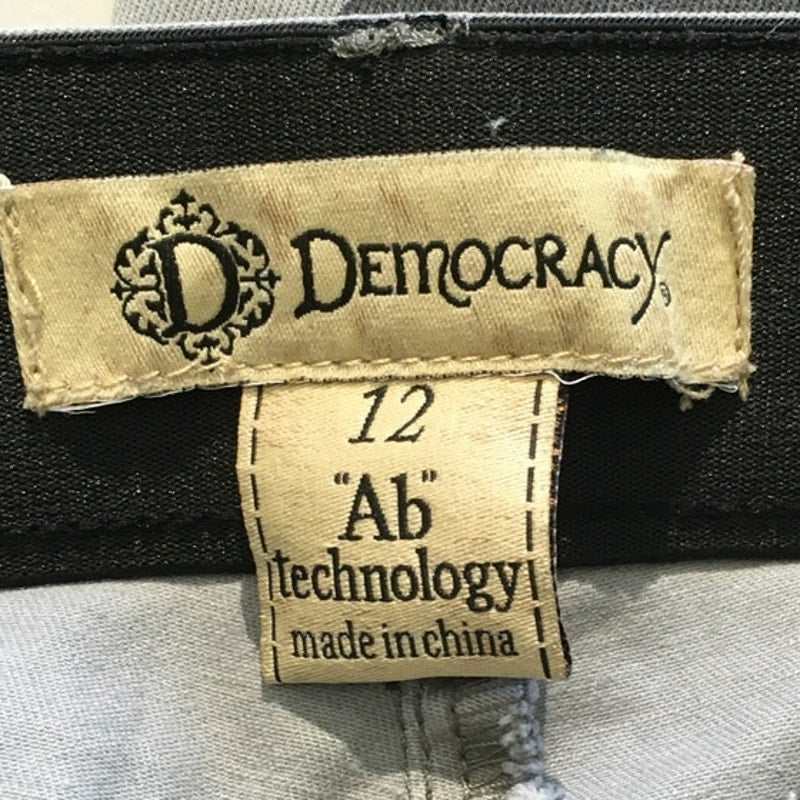 These Democracy camo-print pants combine comfort and style with their signature "Ab Technology" design that provides a flattering fit. Featuring a gray camouflage pattern and edgy zip-front pockets, these pants are perfect for creating a trendy, casual look. The slim fit and stretchy fabric ensure all-day comfort, making them a go-to choice for modern streetwear fashion.