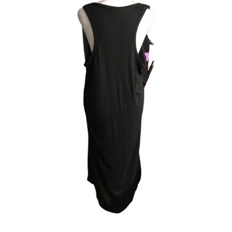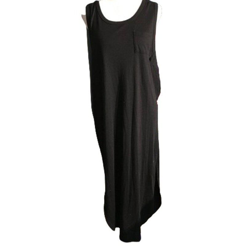 This laid-back black maxi dress from Double Zero is the definition of effortless comfort. Made from soft t-shirt material, it features a relaxed fit, racerback cut, and a single front chest pocket for that casual-chic touch. Perfect for warm days or layering with denim jackets and sneakers for an everyday athleisure vibe.
