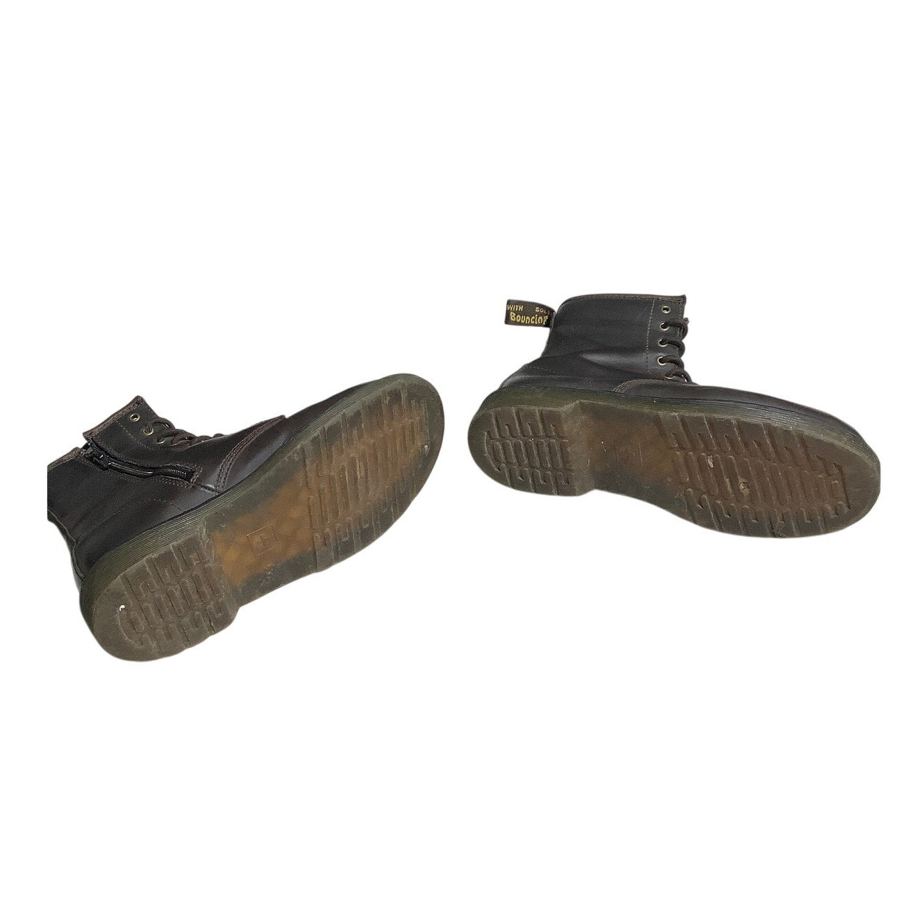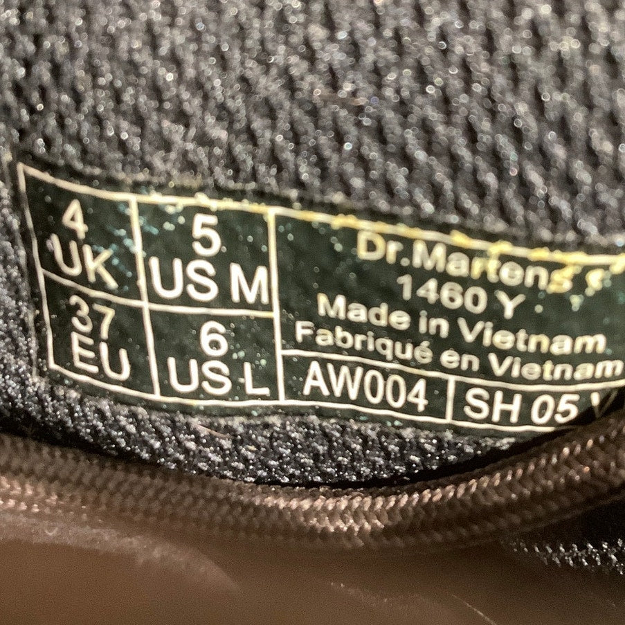 Dr. Martens 1460 side-zip boots in medium brown leather, women’s size 5. These iconic boots feature the signature AirWair bouncing soles for comfort and durability, with the classic lace-up front and convenient side zipper for easy wear. A timeless combat boot style that pairs effortlessly with casual or edgy outfits.