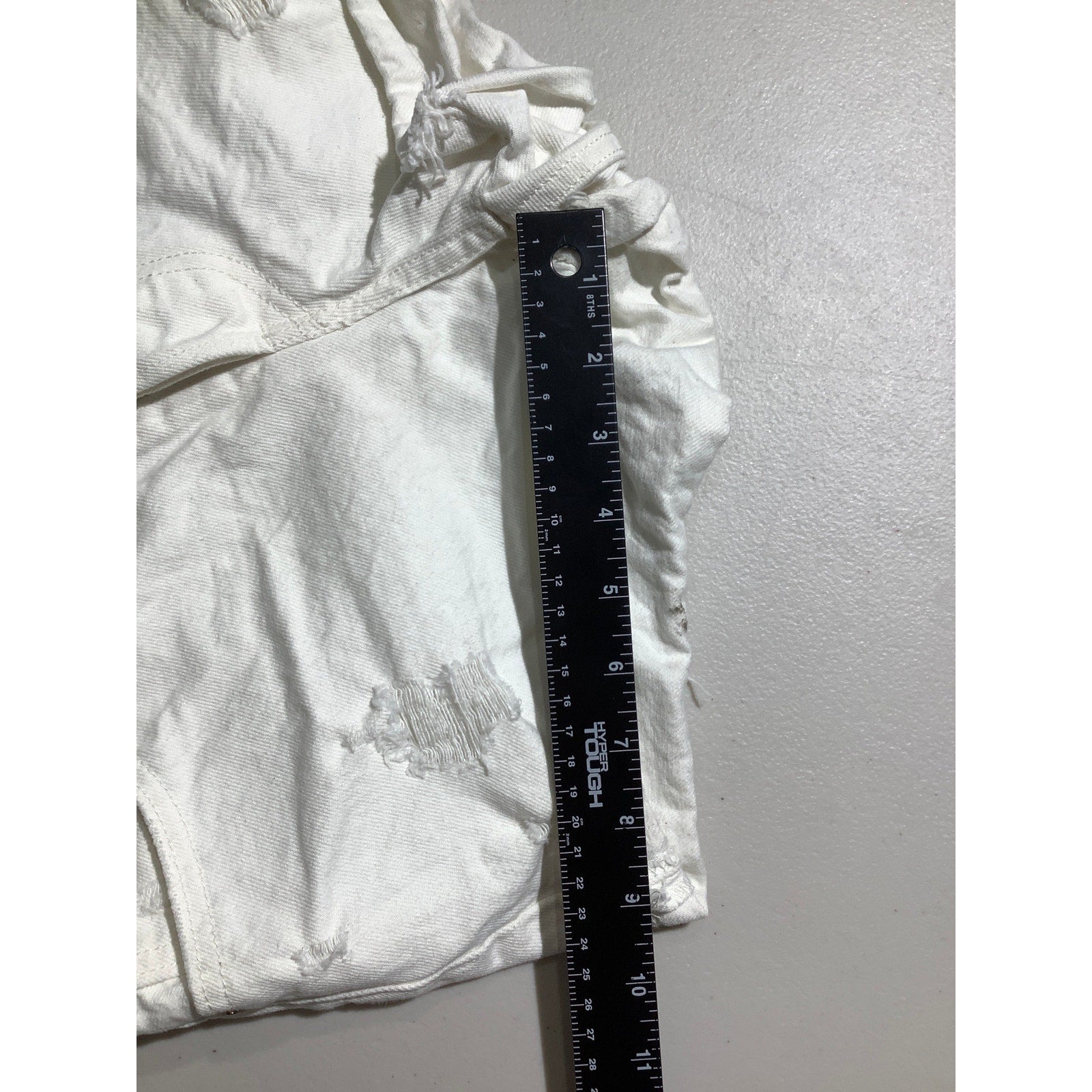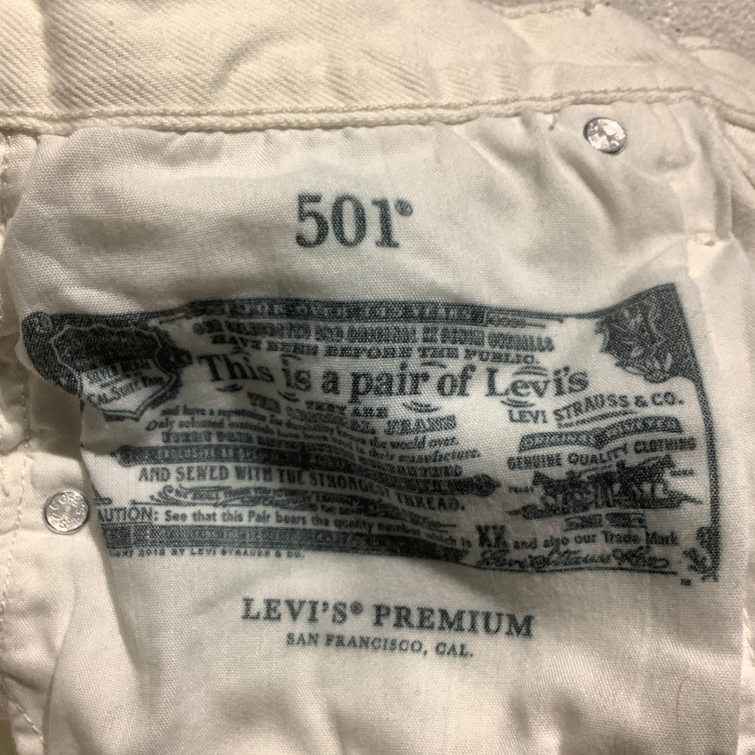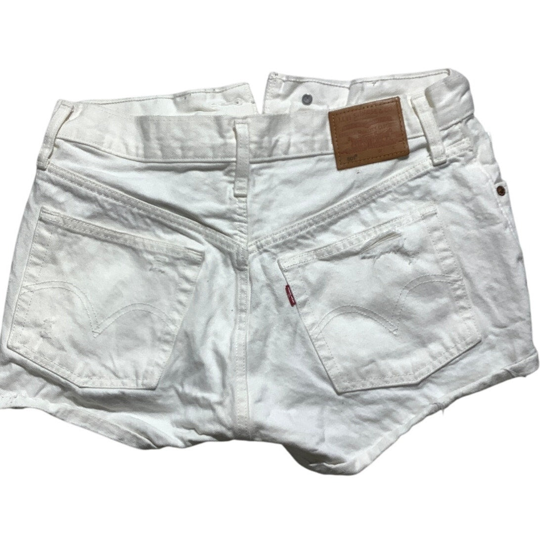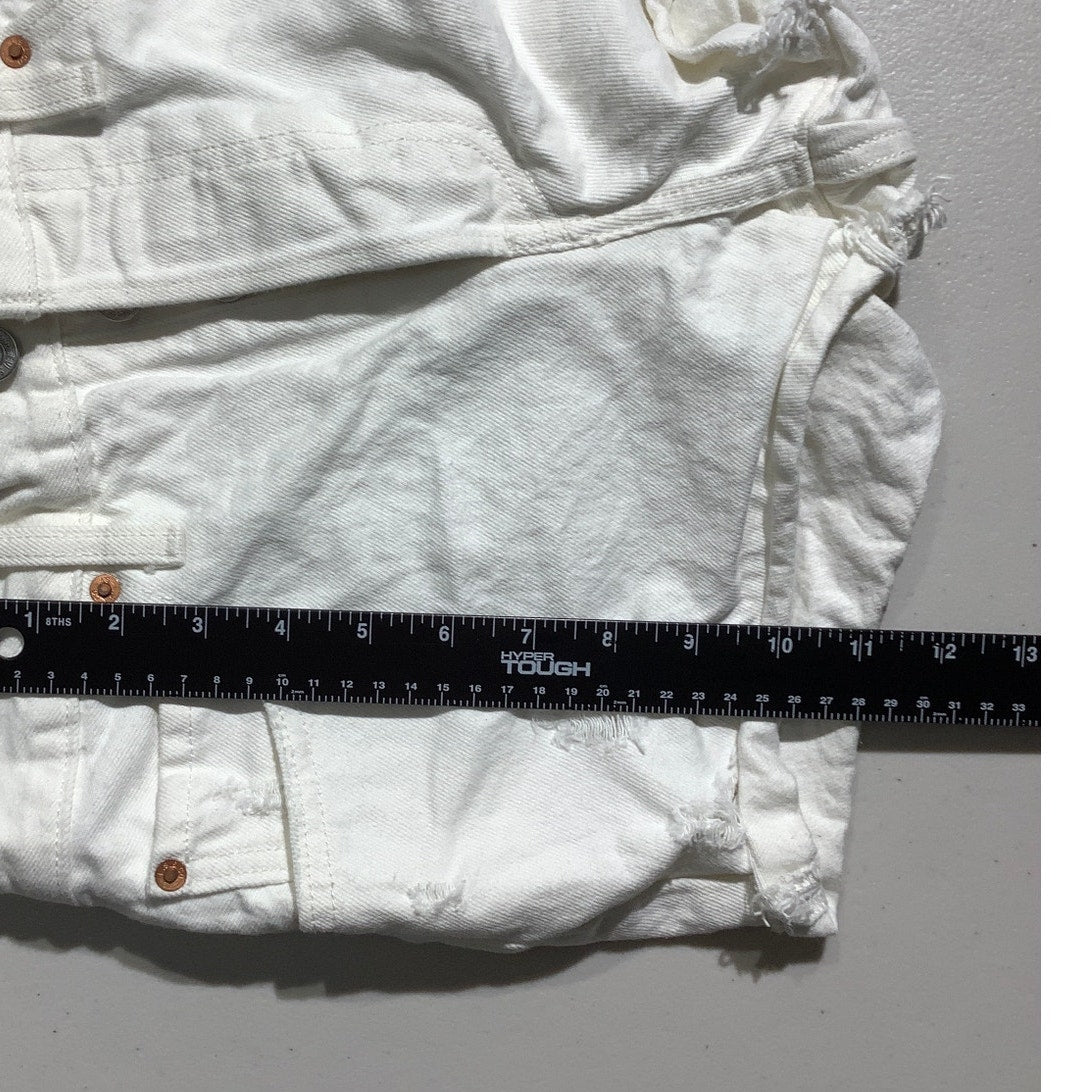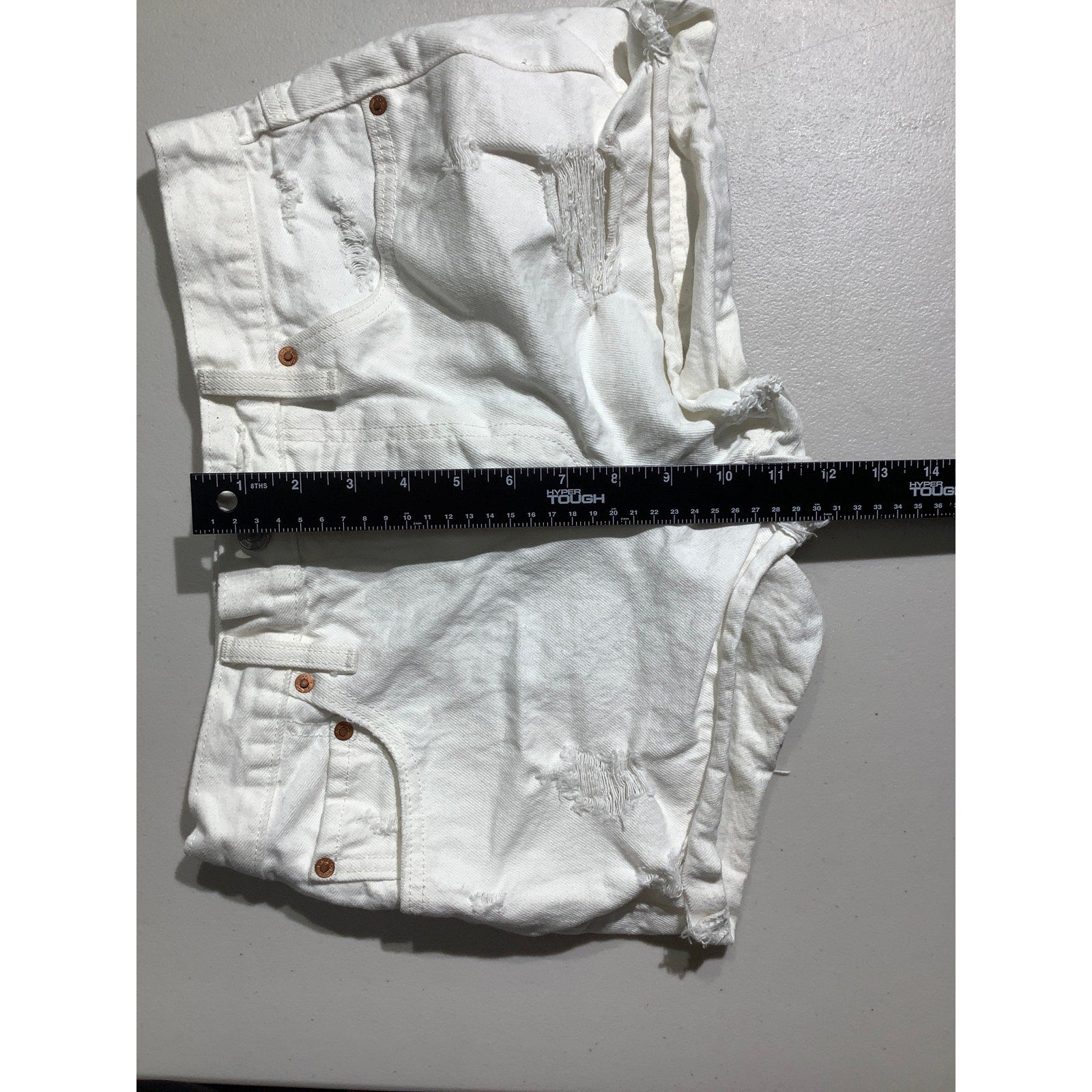 These Levi’s Premium 501 women’s denim shorts in size 27W feature a classic high-rise fit with a distressed design for an effortlessly laid-back vibe. Crafted from 100% cotton, they have a sturdy yet comfortable feel and a timeless button-fly closure. The raw hem and iconic Levi’s back patch make them a wardrobe essential for warm-weather outfits.