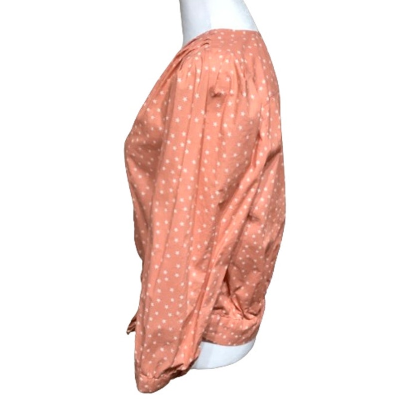 Add a touch of boho charm to your wardrobe with this Madewell peach wrap top adorned with a delicate star print. Perfect for a relaxed day out or a casual evening, this top combines style and comfort effortlessly.