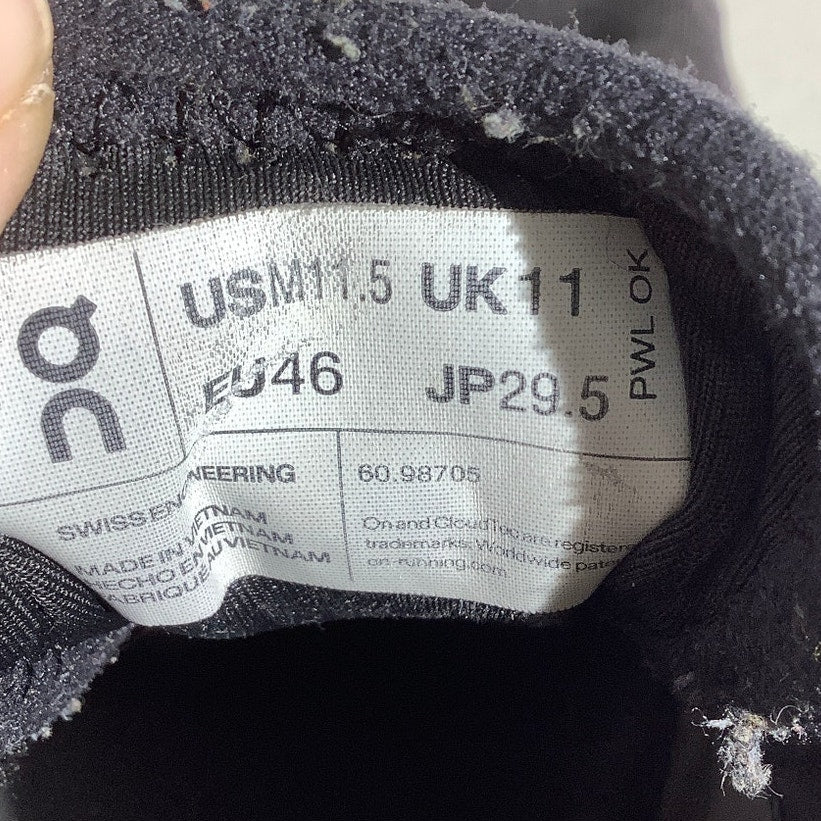On Cloud Cloud X running shoes in men’s size 11.5, black colorway. Designed for performance and comfort, these lightweight athletic sneakers feature On’s signature CloudTec sole for responsive cushioning and support. Please note: some wear is present (see pictures).