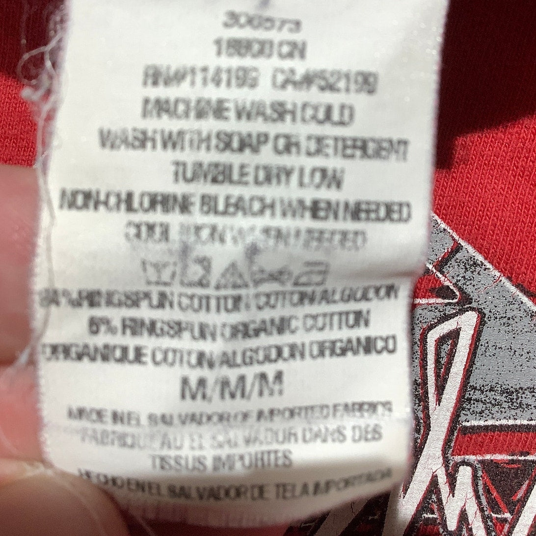 This Quiksilver kids tee features a bold surf-inspired graphic on a vibrant red cotton fabric. Lightweight and easy to wear, it’s great for everyday outfits, skate park days, or beach adventures. A small hole near the neckline is shown in photos and reflected in the price.