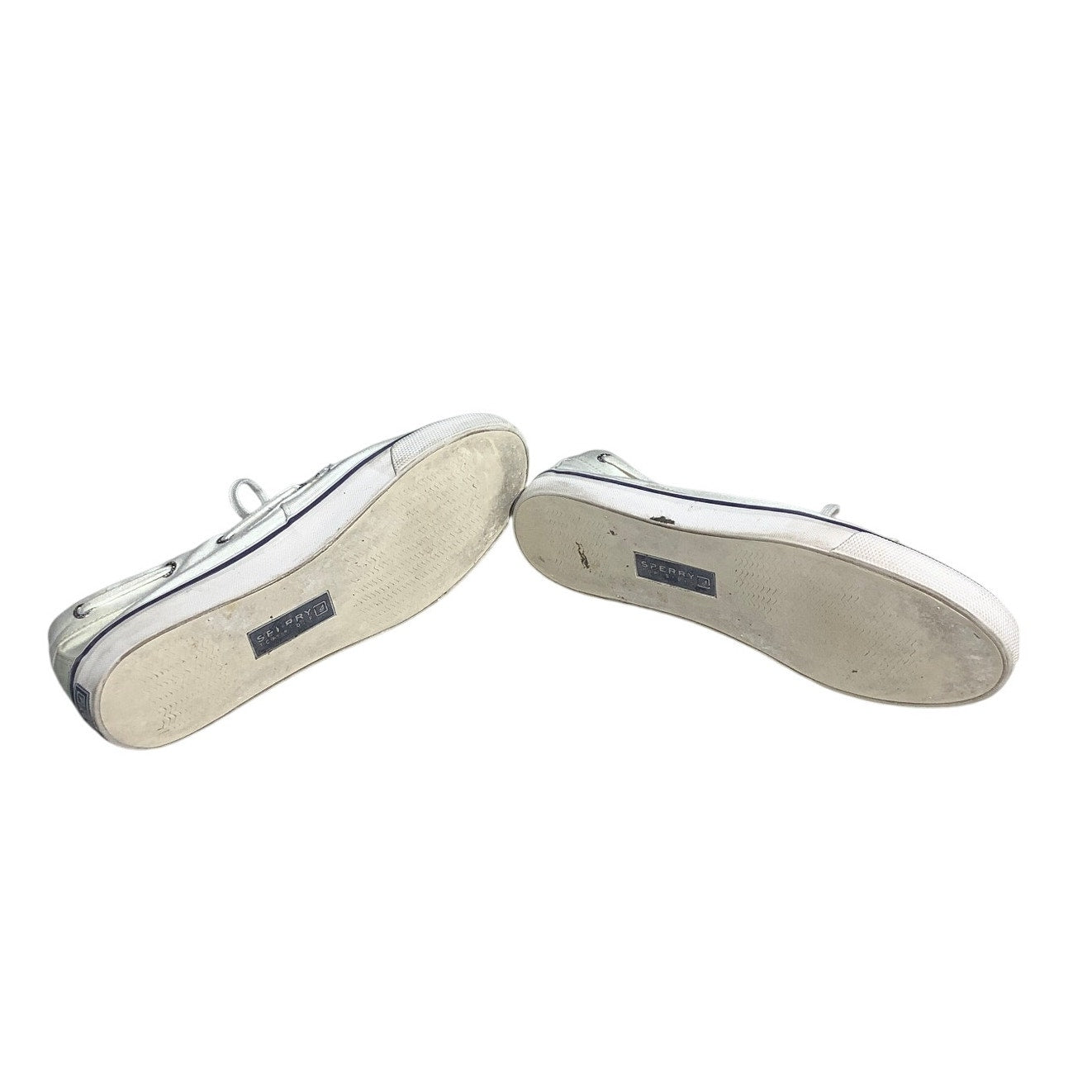 Sail into timeless style with these Sperry Bahama II Top-Sider boat shoes in crisp white canvas with blue interior trim. Designed for comfort and durability, these classic nautical shoes feature Sperry’s signature non-slip outsole and a laid-back look perfect for seaside wear or casual everyday outfits.