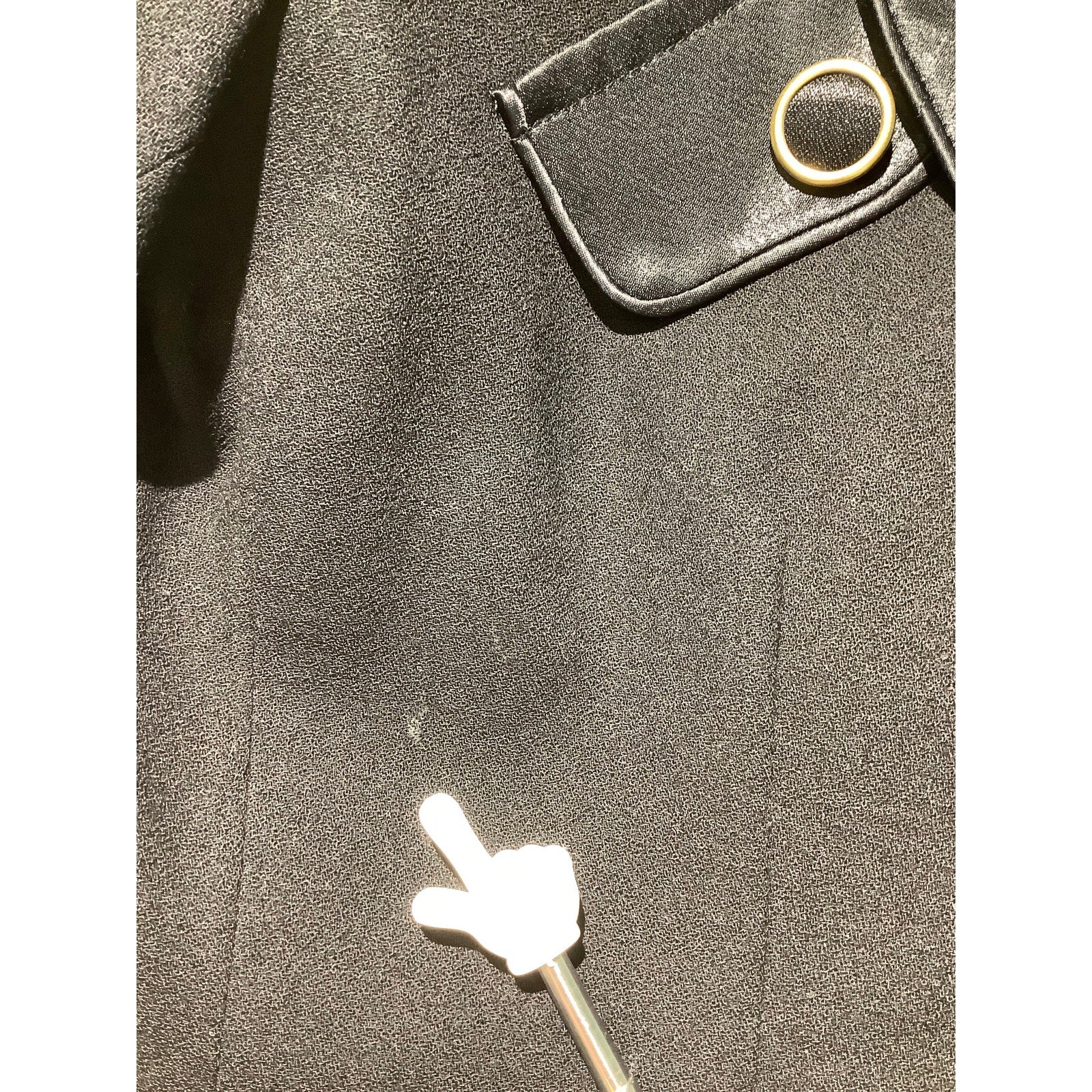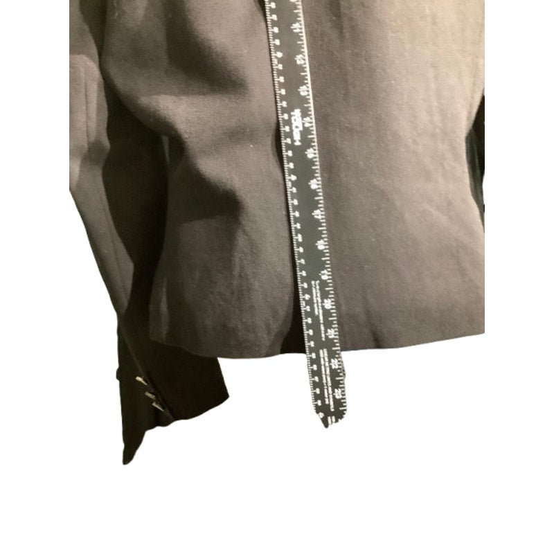Elegant black blazer by Stanley Blacker with a sophisticated double-breasted design and gold-accented buttons. Features satin-look lapels and decorative button detailing for a refined, polished finish. Perfect for workwear, dressy occasions, or elevating casual outfits.