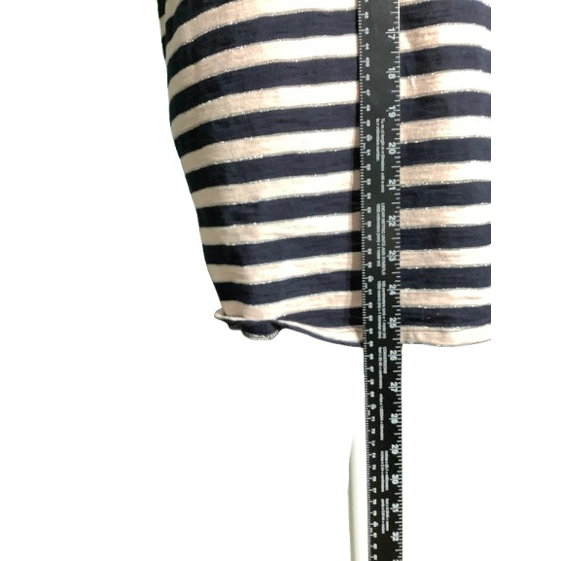 This Talbots women’s striped top in size 3X offers a breezy, casual style with a touch of nautical charm. Featuring horizontal stripes in light pink and navy blue, it’s made from a soft, lightweight fabric for all-day comfort. The relaxed fit and short sleeves make it perfect for warm-weather wear or easy layering.