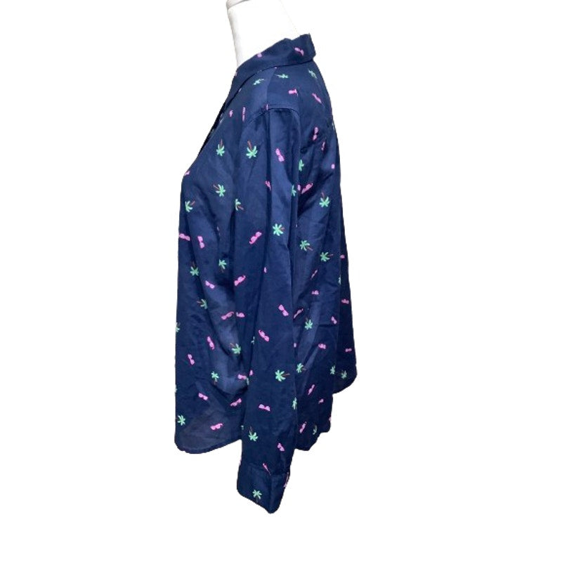 This Talbots women's long sleeve button-up shirt is perfect for beach resorts and summer vacations. Featuring a lightweight fabric with a charming embroidered design, this shirt combines comfort and style effortlessly. Ideal for casual outings or relaxed days by the sea, this shirt is a versatile addition to any warm-weather wardrobe.