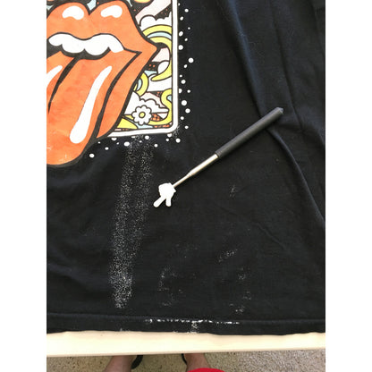 Showcase your love for classic rock with this Rolling Stones black T-shirt featuring a distinctive white paint splatter design. Crafted from 100% cotton, this size XL tee offers both comfort and style. The iconic Rolling Stones tongue logo is prominently displayed, making it a must-have for any fan. Please refer to the provided pictures for exact measurements and details.