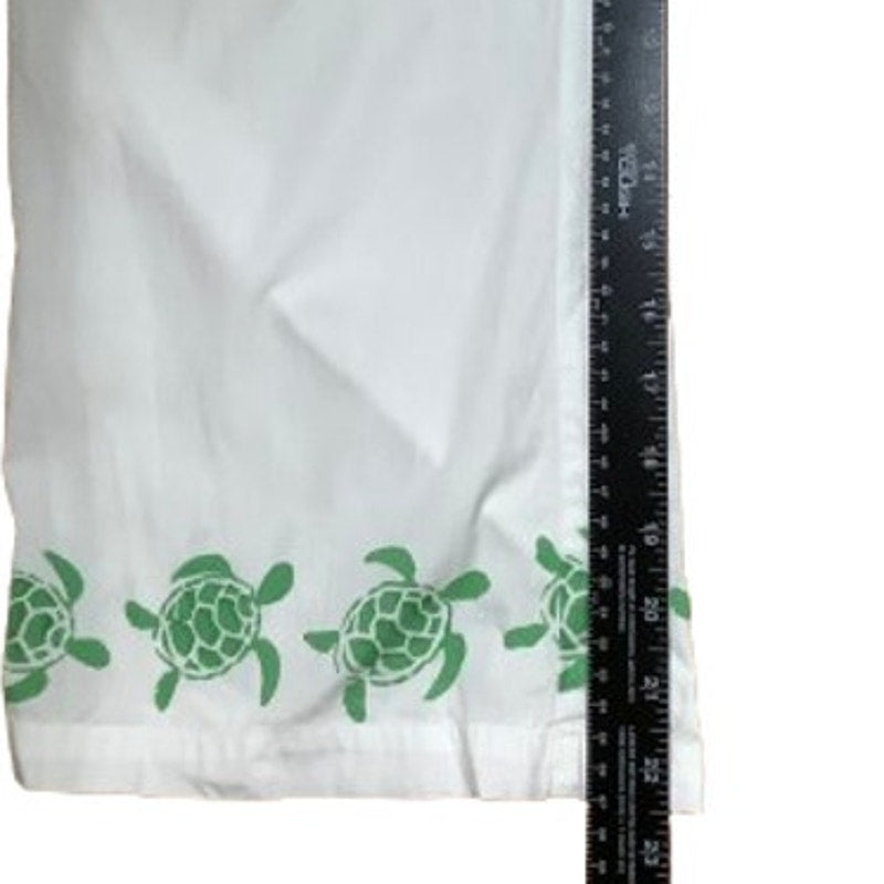 Embrace effortless style and comfort with these Tommy Hilfiger White Drawstring Pants in size Large. Perfect for those laid-back days or a coastal getaway, these pants feature a relaxed fit and a charming turtle print along the hem, adding a touch of whimsy to your casual wardrobe.