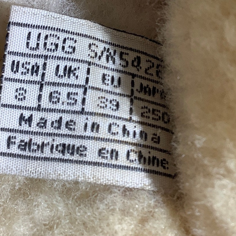 These UGG Kalie Cadet clogs in women’s size 8 feature a light gray suede upper with plush shearling lining for ultimate comfort and warmth. Designed with a chunky wood platform and slip-on style, they combine cozy luxury with a bold, casual look perfect for cooler days.