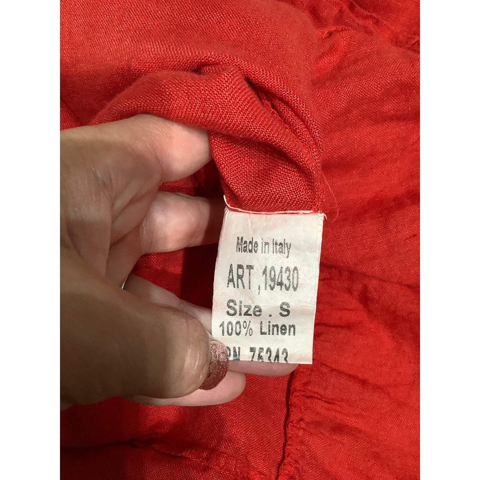 This Valentina Naldi 100% linen top in a vibrant red hue is a lightweight and breathable choice for warm weather. Featuring a flowy fit with ruffle accents on the sleeves and hem, this top exudes a boho-inspired feminine charm. Perfect for pairing with jeans or shorts for a casual yet polished look.