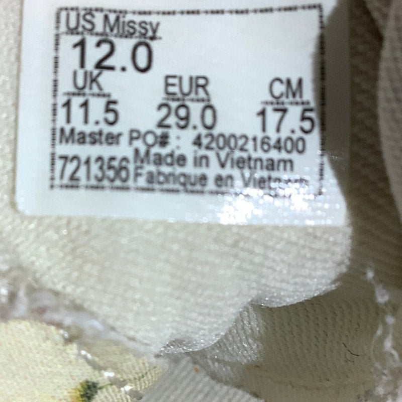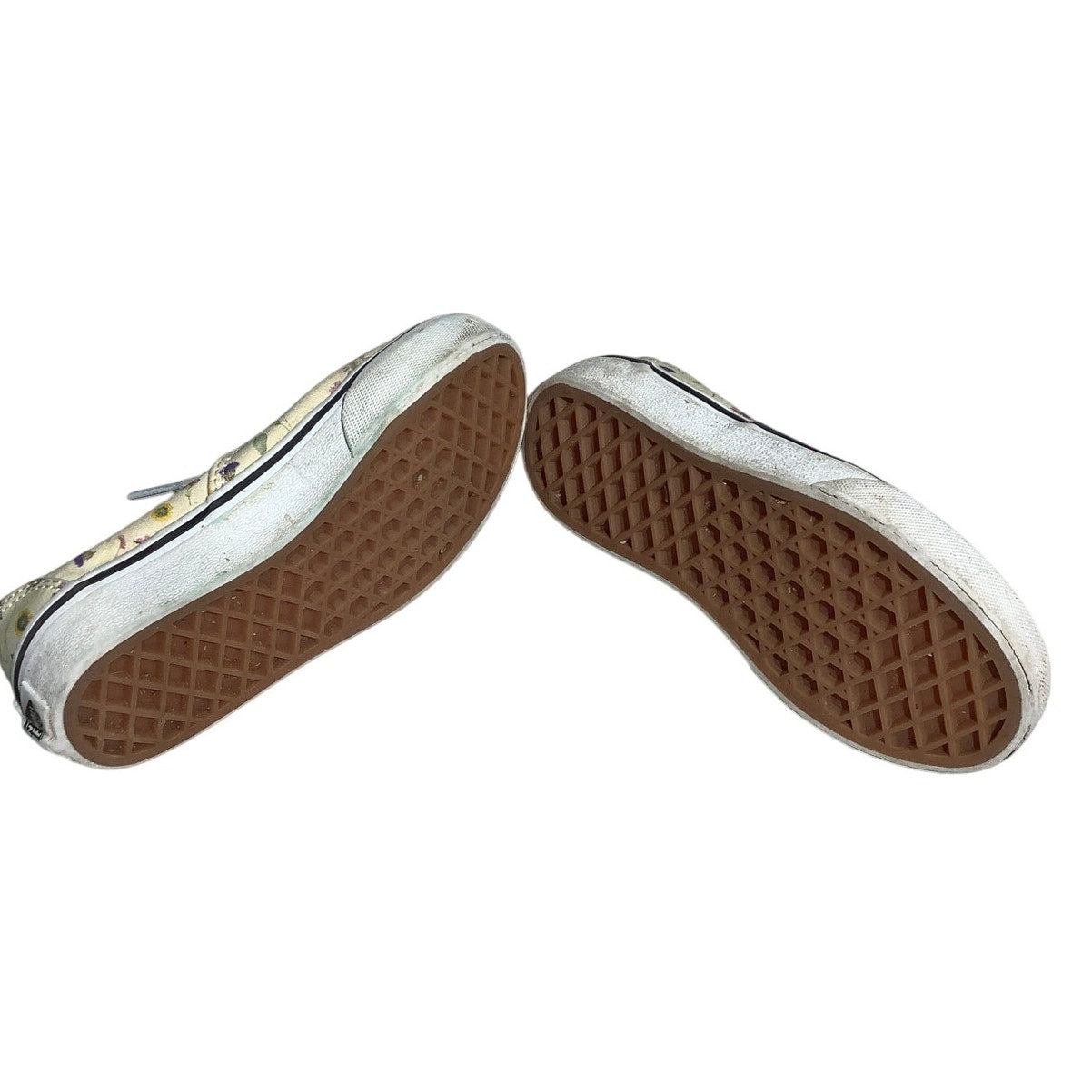 These Vans Authentic low sneakers in child size 12 feature a light yellow canvas upper with a playful multicolor floral pattern. Designed for comfort and everyday style, they offer classic lace-up construction and a durable vulcanized sole perfect for kids on the go.
