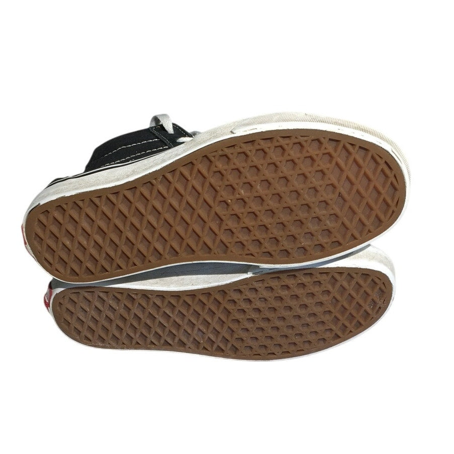 Iconic and timeless, these Vans Black High Tops are a streetwear essential. With the signature white side stripe and durable canvas upper, these sneakers offer style and comfort. Please note a small green mark on the inner side of the right shoe (see photo) — does not affect wear.