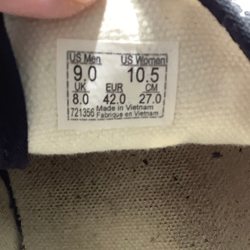 These Vans lace-up sneakers in size 9 men’s / 10.5 women’s feature the timeless black and white checkerboard pattern. Known for their durable design and iconic street style, these shoes are perfect for everyday wear. Please note: no laces included and small stain on right shoe (see photos) which may come out with washing.