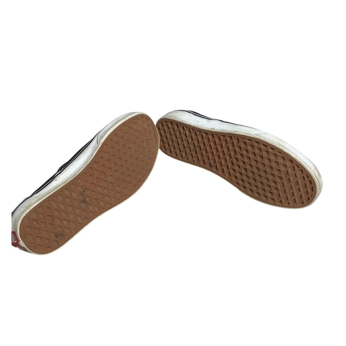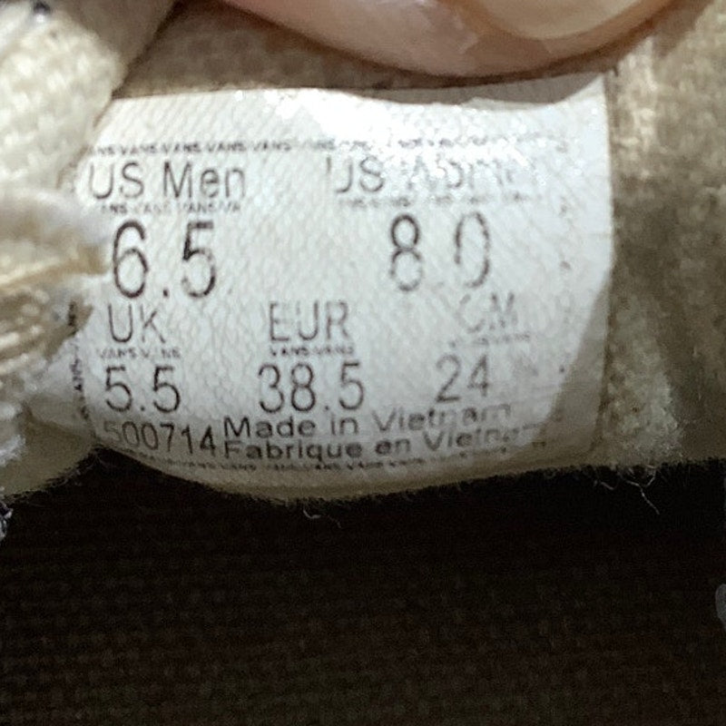 Vans Classic Slip-On sneakers in men’s size 6.5 / women’s size 8, featuring a black canvas upper with white midsole and contrast stitching. These iconic skate shoes offer timeless style, easy slip-on wear, and durable construction, making them a versatile addition to any casual wardrobe.