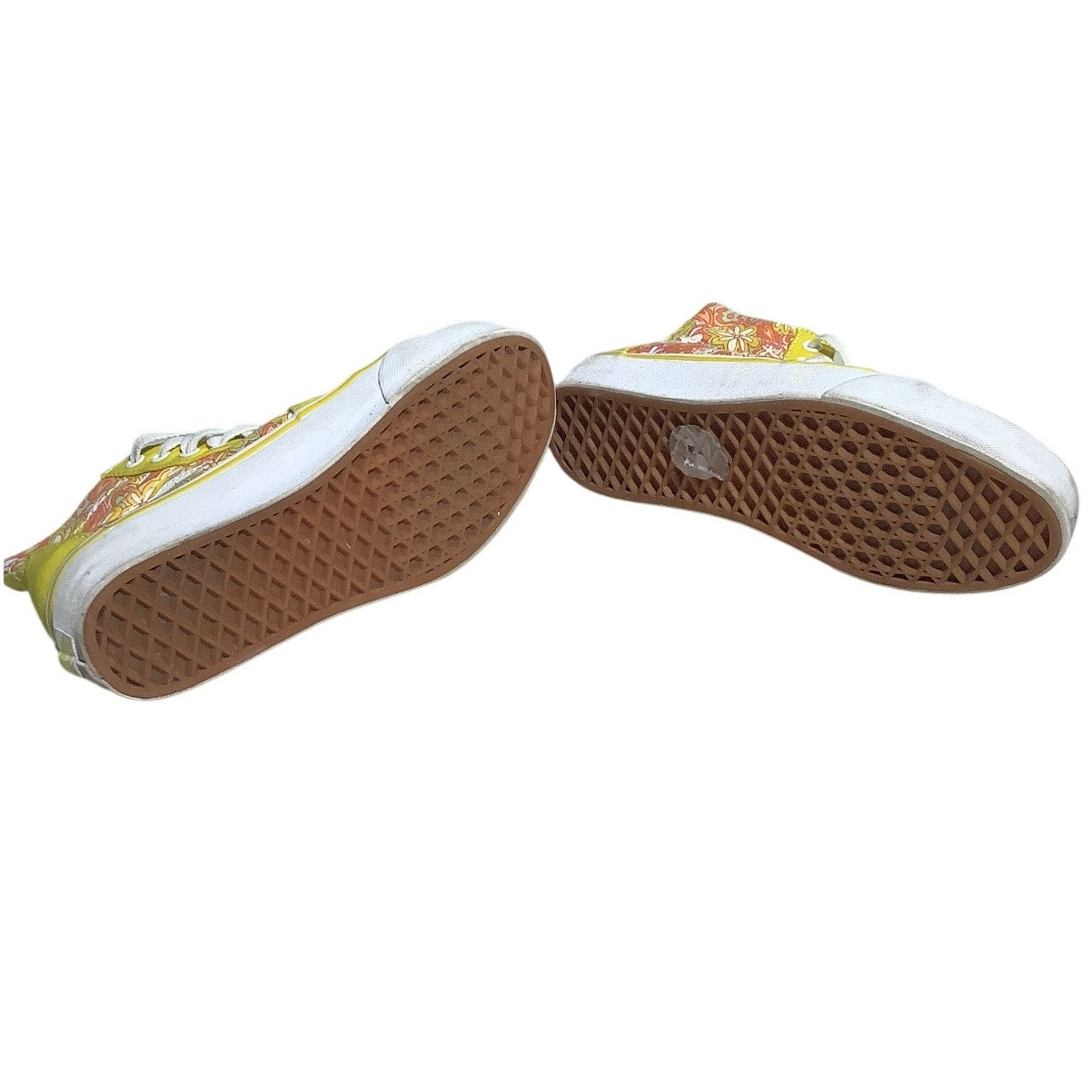 These Vans high top sneakers in size 6 men’s / 7.5 women’s feature a bold yellow canvas upper with a colorful floral print along the sides. Designed with classic Vans comfort, they offer a lace-up closure, padded collar, and durable rubber outsole. Perfect for adding a pop of color to any casual outfit.