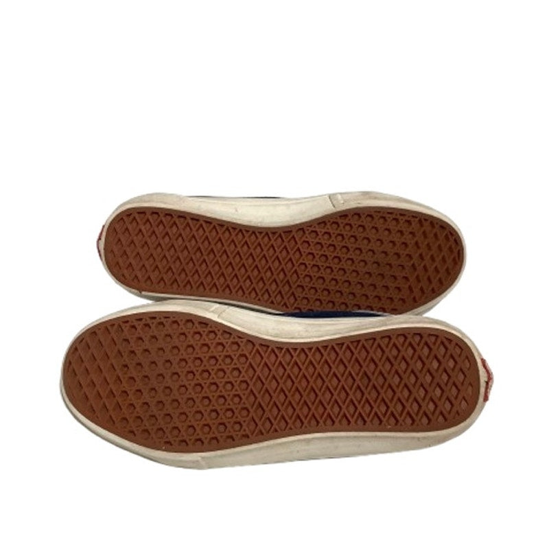 These classic navy and white Vans sneakers are a go-to for everyday wear with an edgy twist. Featuring the iconic side stripe and a clean low-top silhouette, they show some wear but still have excellent tread and tons of life left. A must-have for skaters, creatives, and casual dressers alike.