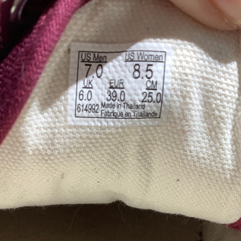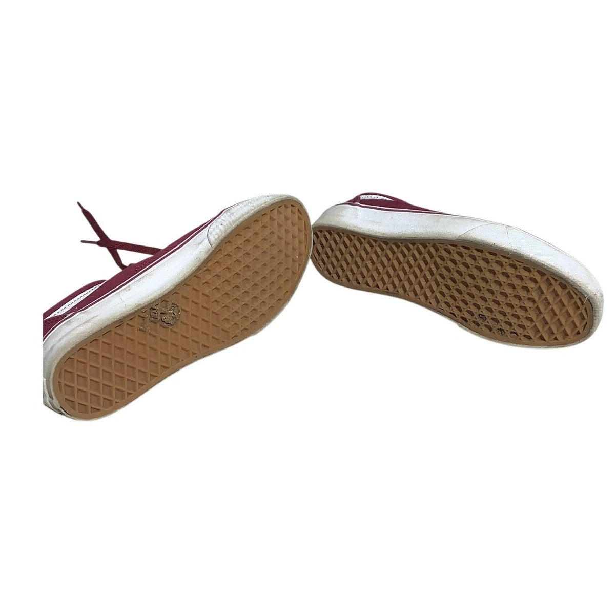 These Vans Old Skool sneakers in men’s size 7 (women’s 8.5) feature a classic burgundy canvas upper with the iconic white side stripe. Built for everyday comfort and durability, these low-top skate shoes are a staple for casual wear and street style. Some signs of wear on soles and uppers (see photos).