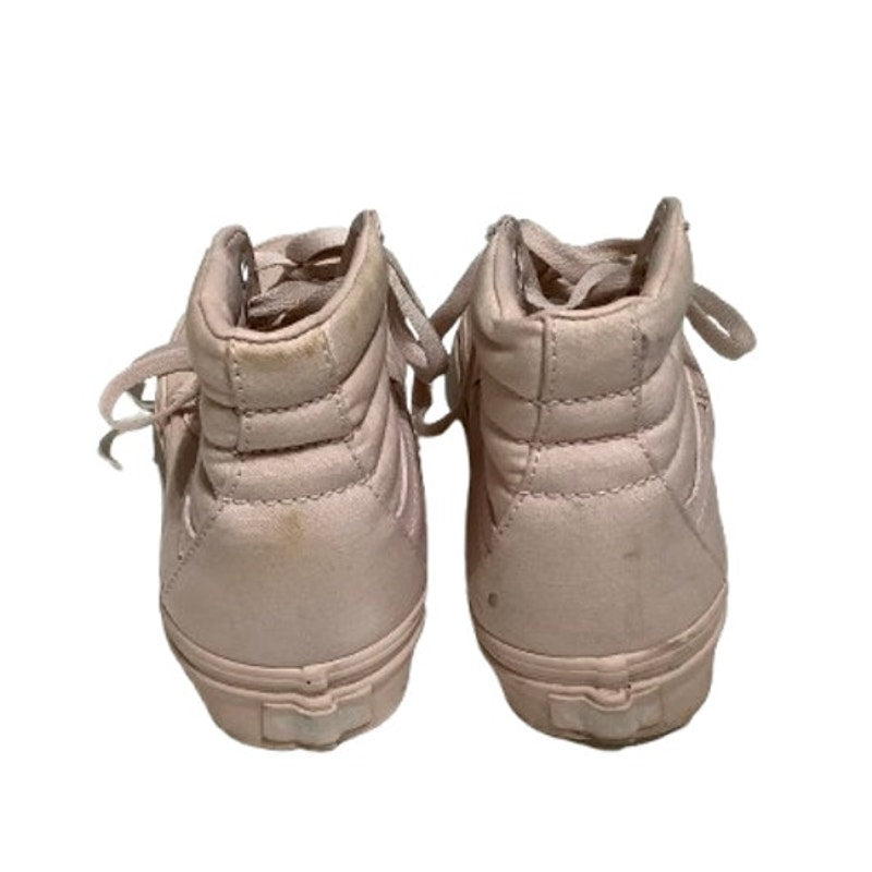 Add some edge to your look with these pink Vans high-top sneakers. Featuring the classic Vans side stripe and cushioned ankle collar, they’re perfect for everyday wear with a bold pop of color. These shoes show staining and wear throughout (see photos), making them ideal for someone who loves a broken-in, lived-in aesthetic.
