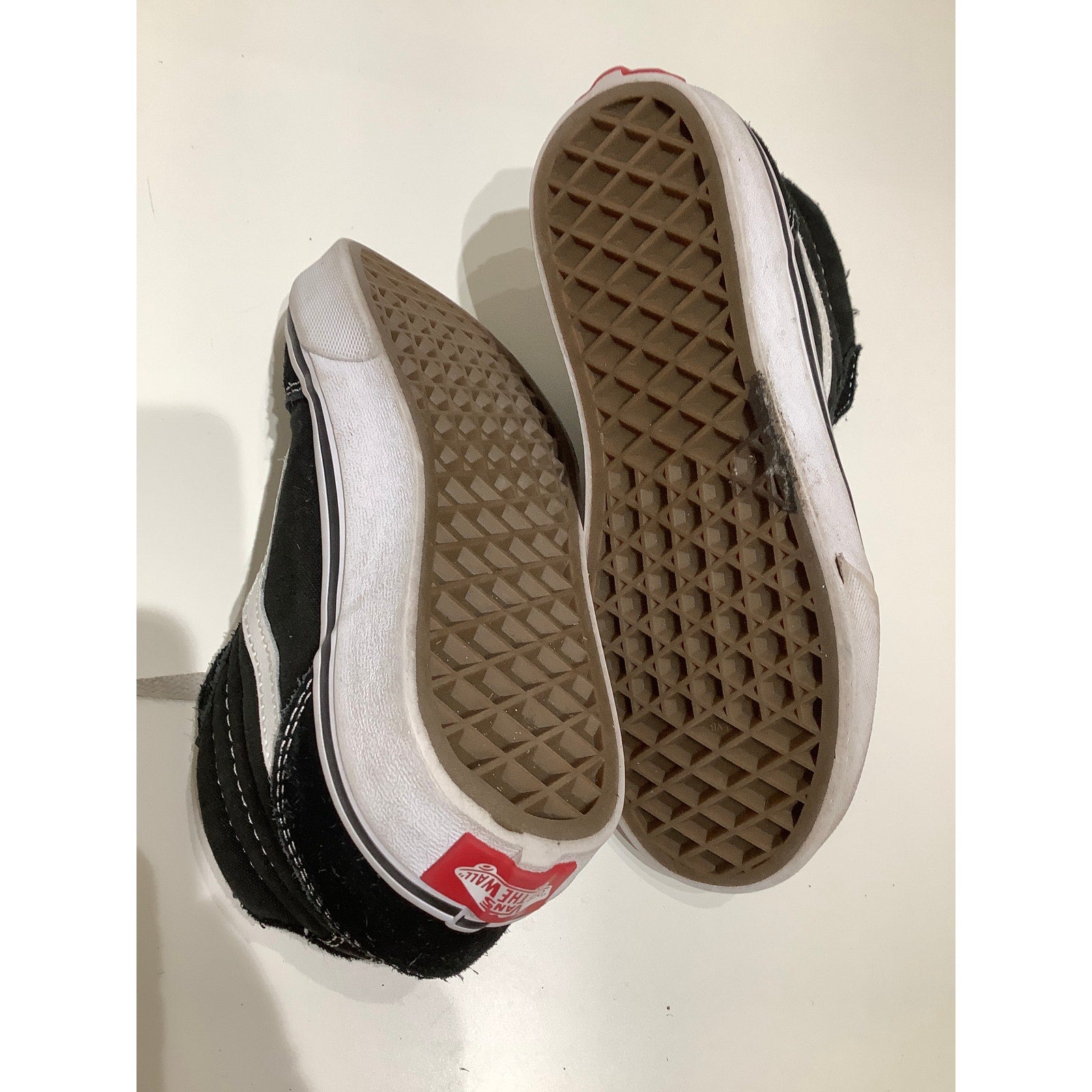 Keep your little one stylish and comfortable with these Vans black and white high-top sneakers. Featuring the iconic side stripe, lace-up closure, and durable rubber sole, these shoes are perfect for everyday wear and skate sessions. The padded collar provides extra support, making them both fashionable and functional.