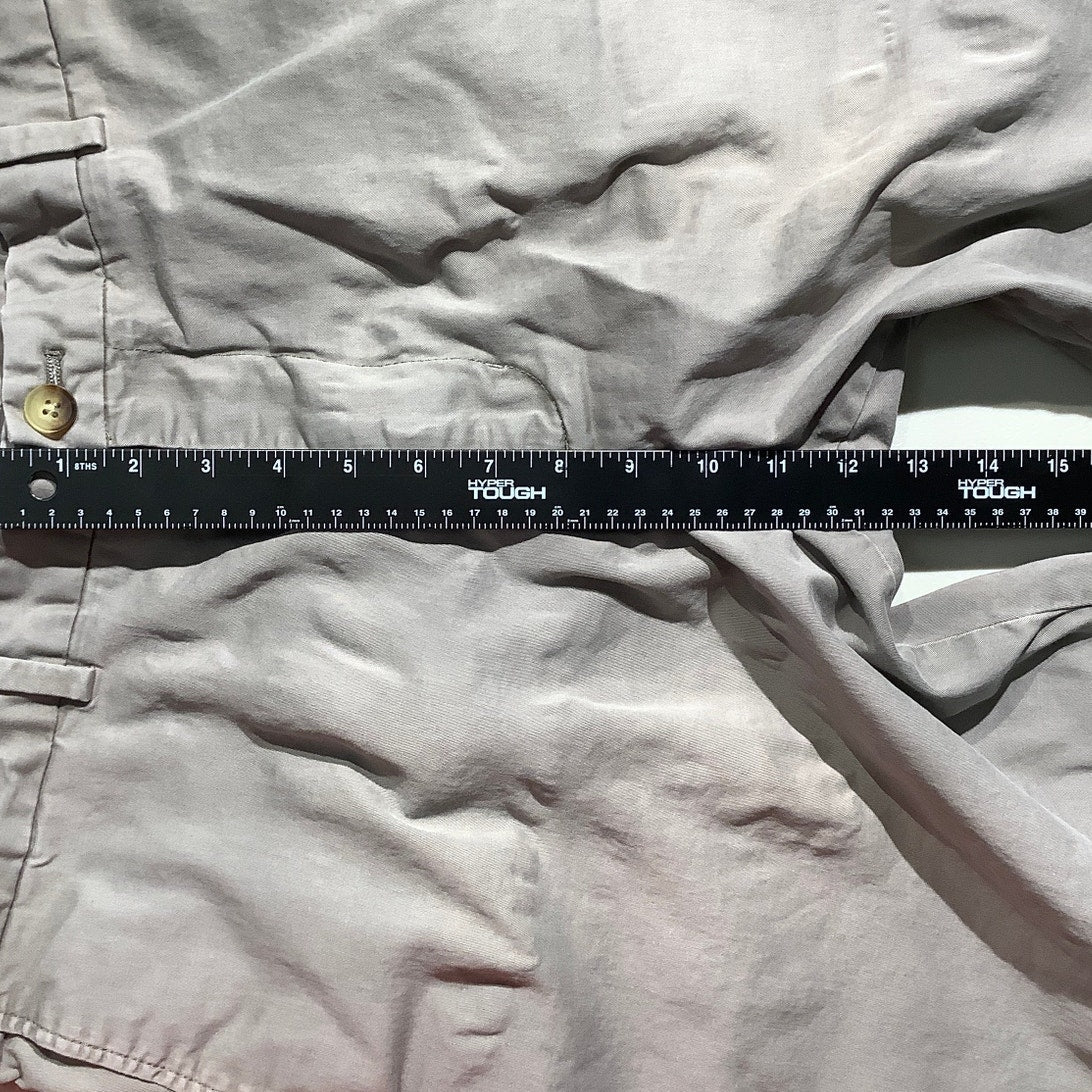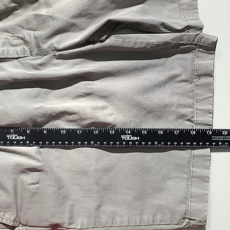 These Vineyard Vines Breaker shorts in men’s size 40 offer timeless summer style in a light gray cotton blend. Designed with a relaxed fit, zip fly, and button closure, they’re perfect for beach days, backyard gatherings, or everyday casual wear. Note: Light stain on the back left leg – see photo.
