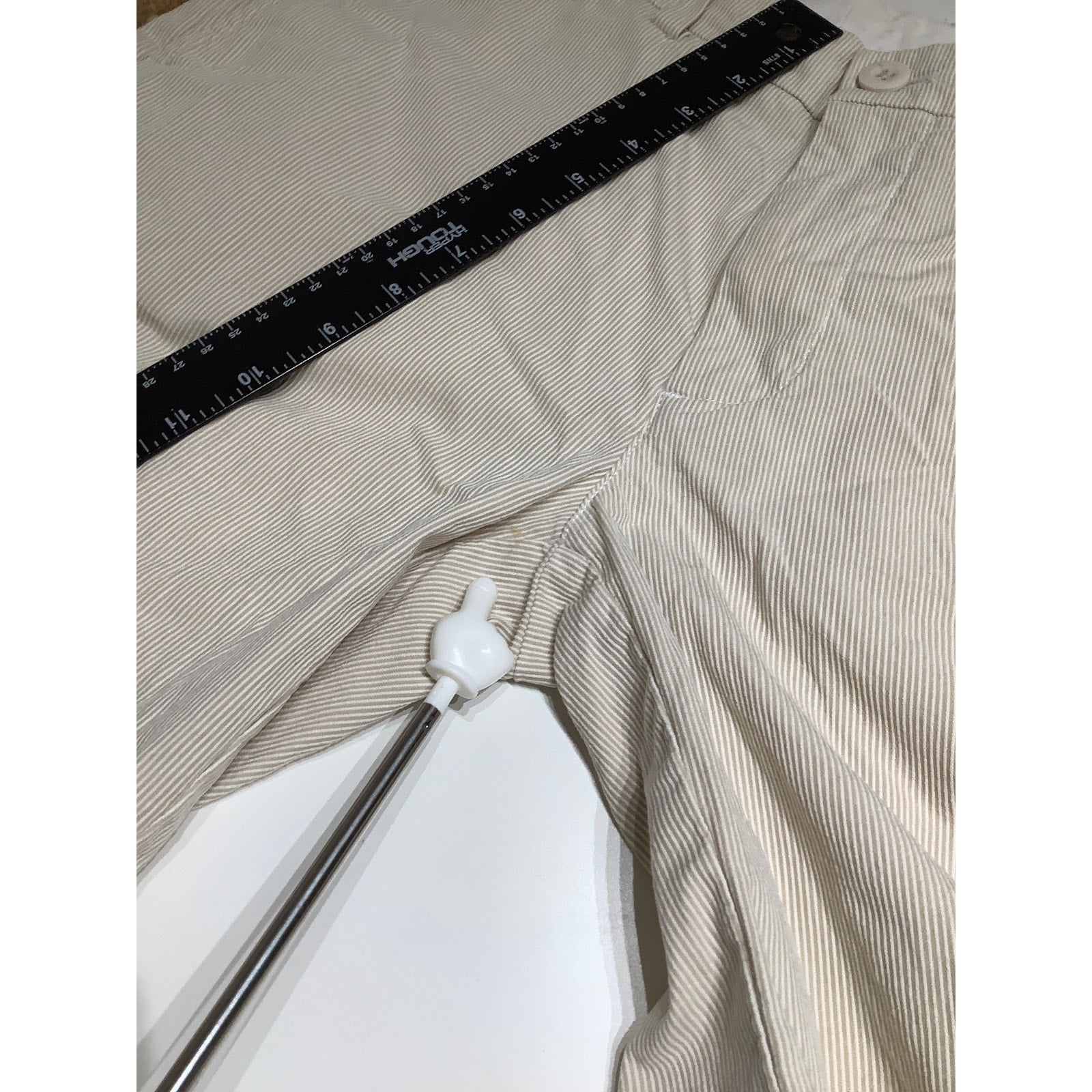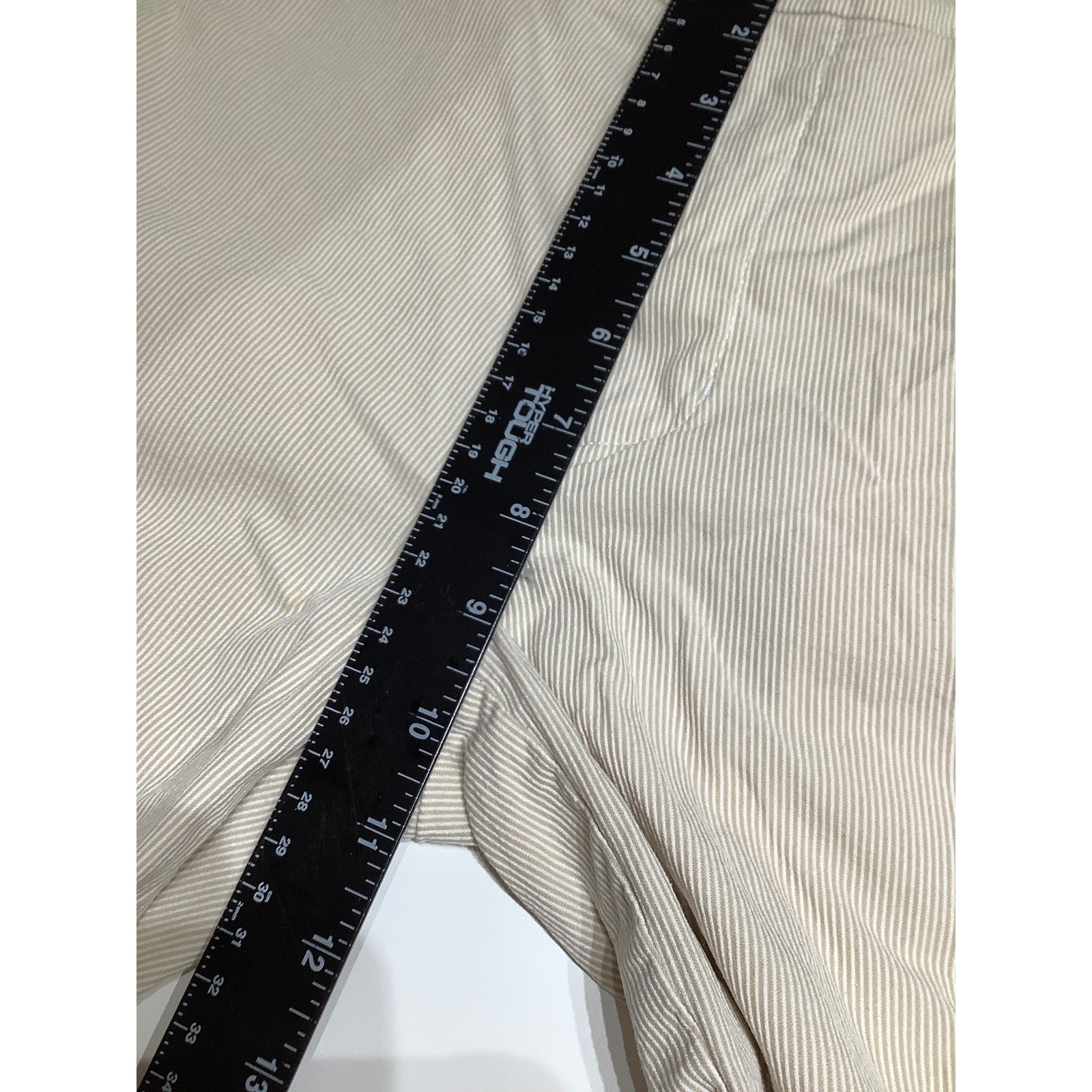 These Vineyard Vines Breaker Shorts in Size 30 feature a timeless white and tan stripe design, making them perfect for a classic, preppy look. Made from 100% cotton, these shorts are breathable and comfortable for warmer weather. With a small spot on the underside, these pre-loved shorts are still ideal for casual days out or relaxed summer evenings.