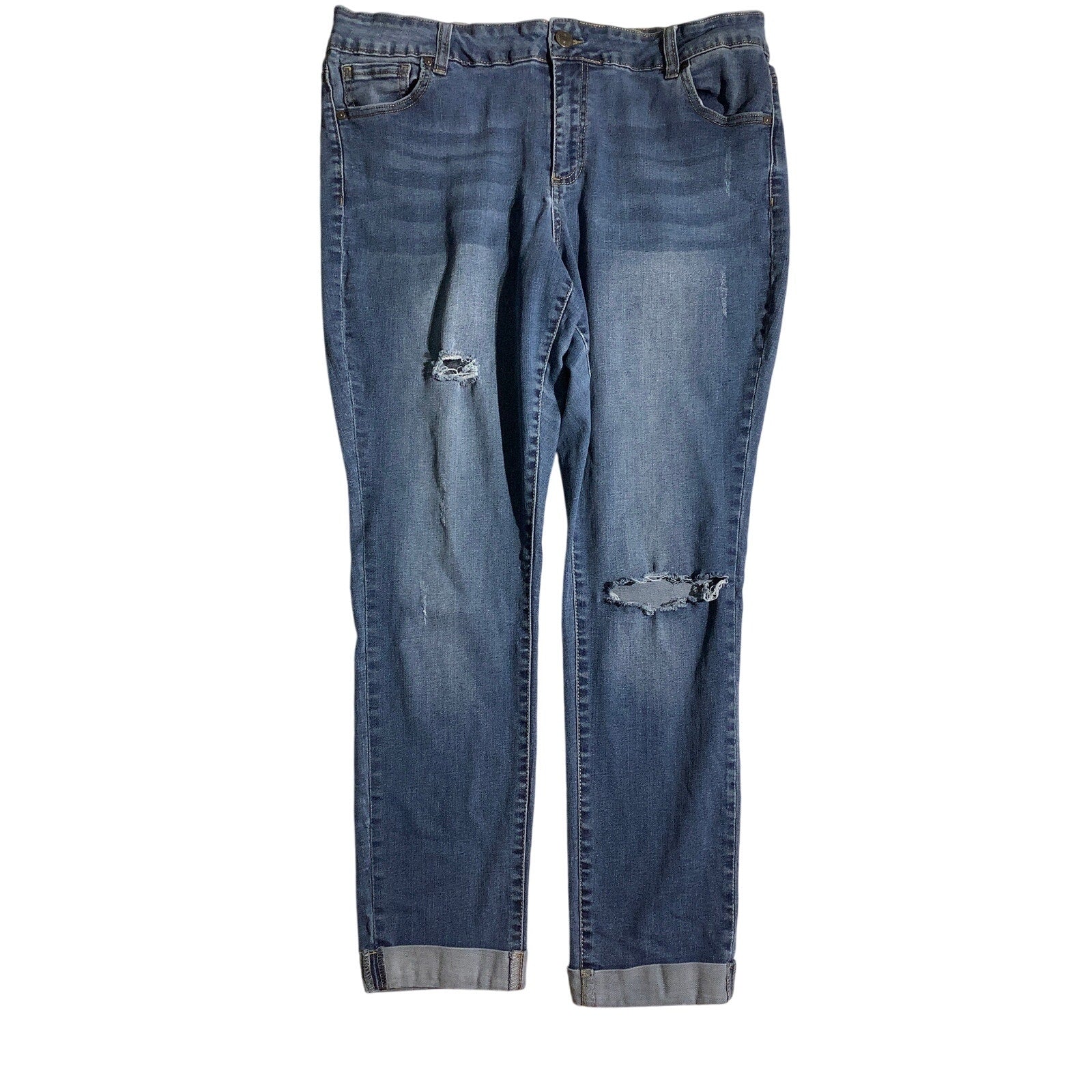 These Wax Jean capris in women’s size 18 feature a relaxed, casual style with a trendy rolled cuff design. Crafted from a soft, stretchy denim blend, they offer a distressed front with subtle rips for a laid-back vibe. Perfect for everyday wear or weekend outings.
