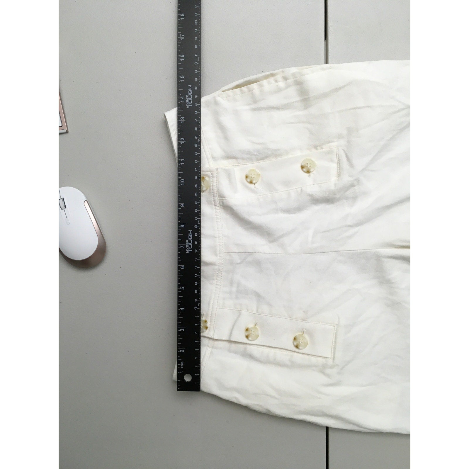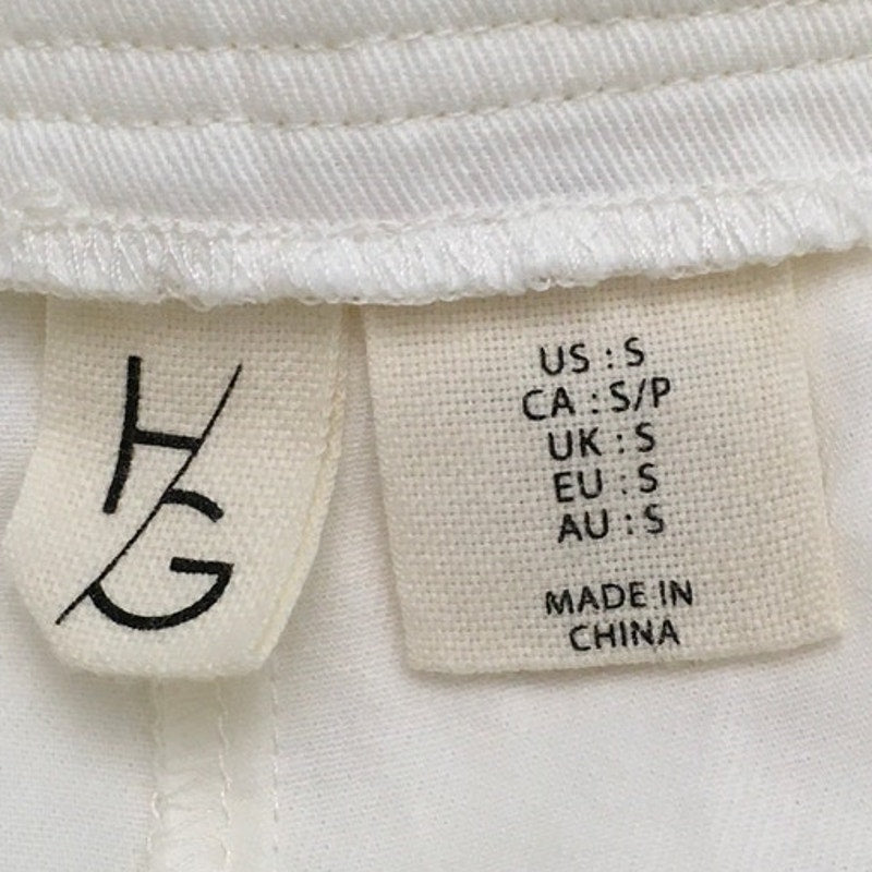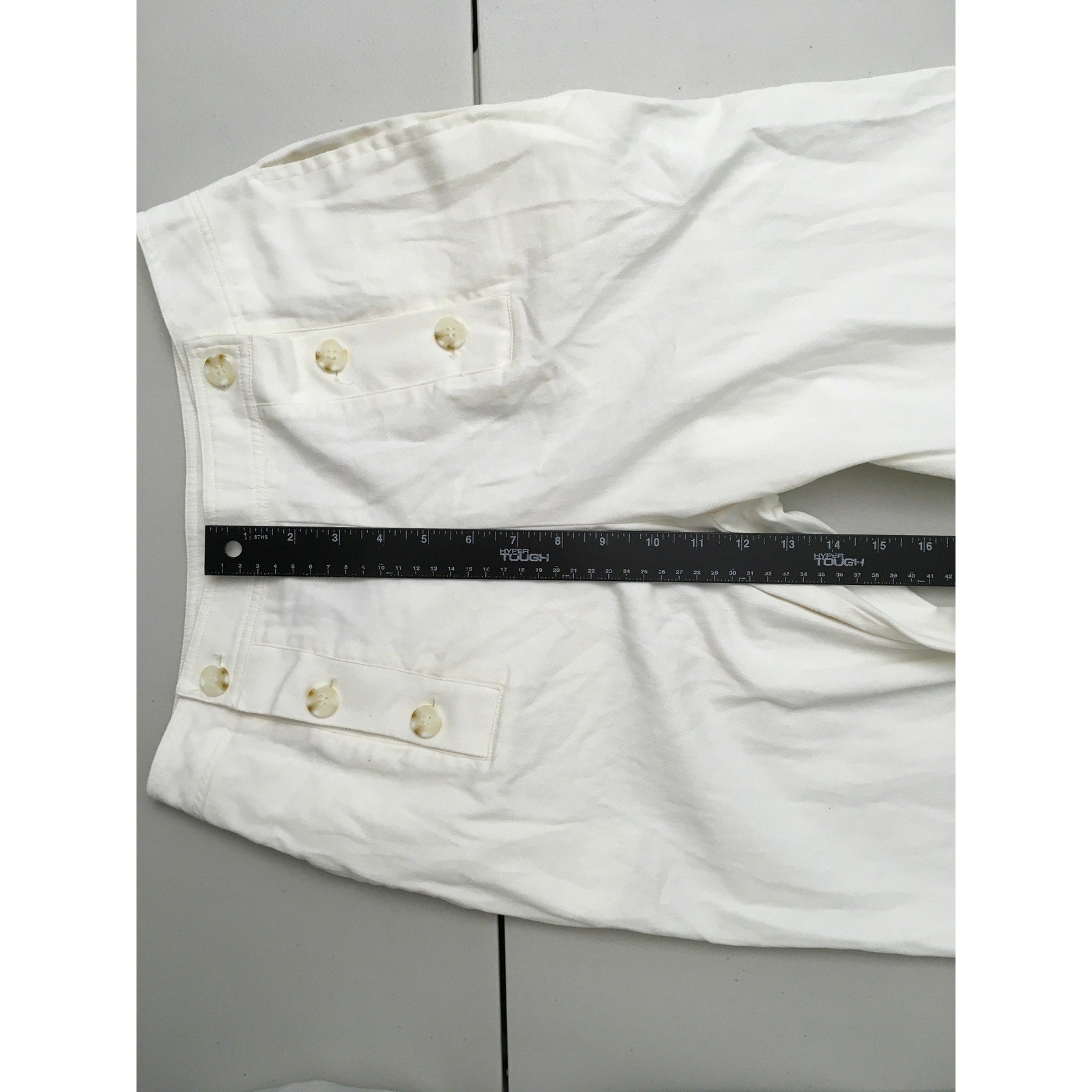 These HG off-white pants in size S are crafted from 100% cotton, offering a breathable and lightweight feel. Featuring a high-waisted design with a button-up front, these pants exude a classic, nautical-inspired aesthetic. The straight-leg silhouette and structured details make them a versatile choice for both casual and elevated styling.