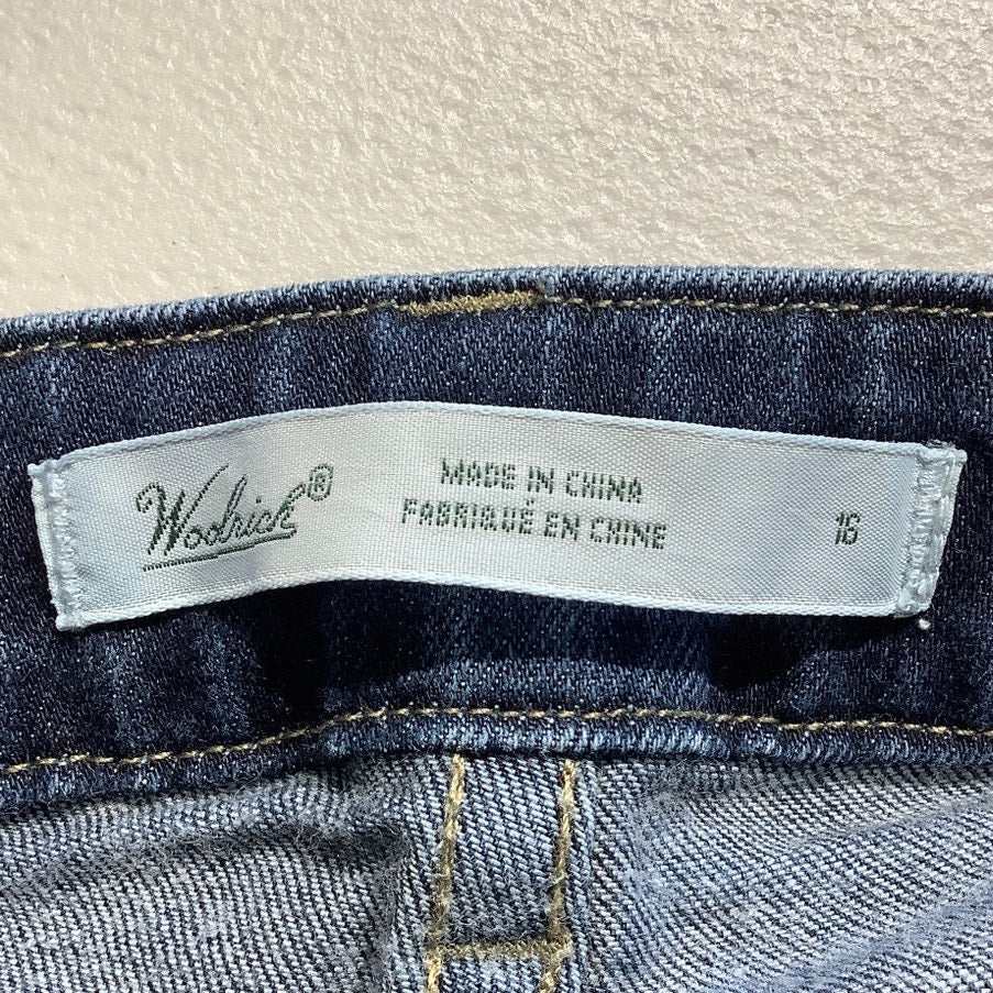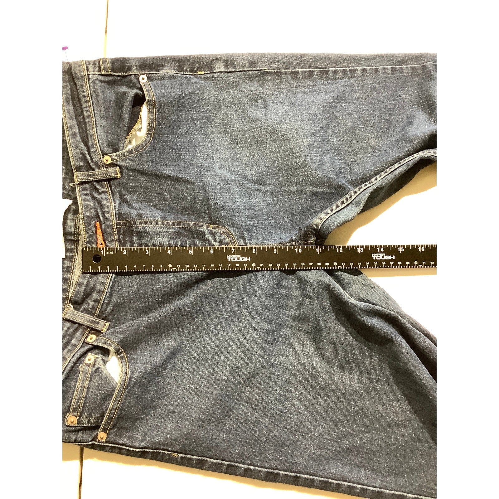 These Woolrich denim blue jeans in size 16 are a timeless wardrobe staple built for comfort and durability. Featuring a straight-leg silhouette and soft denim fabric, they offer everyday ease with a flattering fit. Slight whiskering at the pocket adds a touch of worn-in charm.